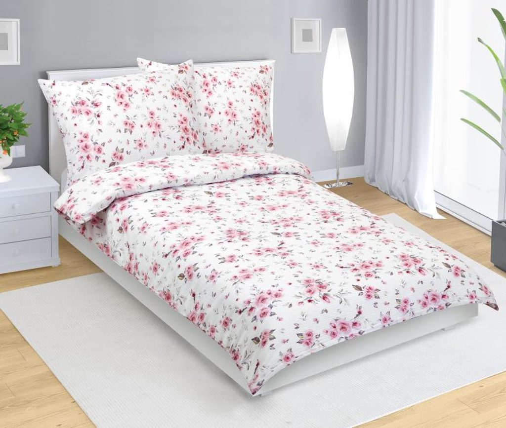 Povlečení krepové Šedá,Růžová 80/949