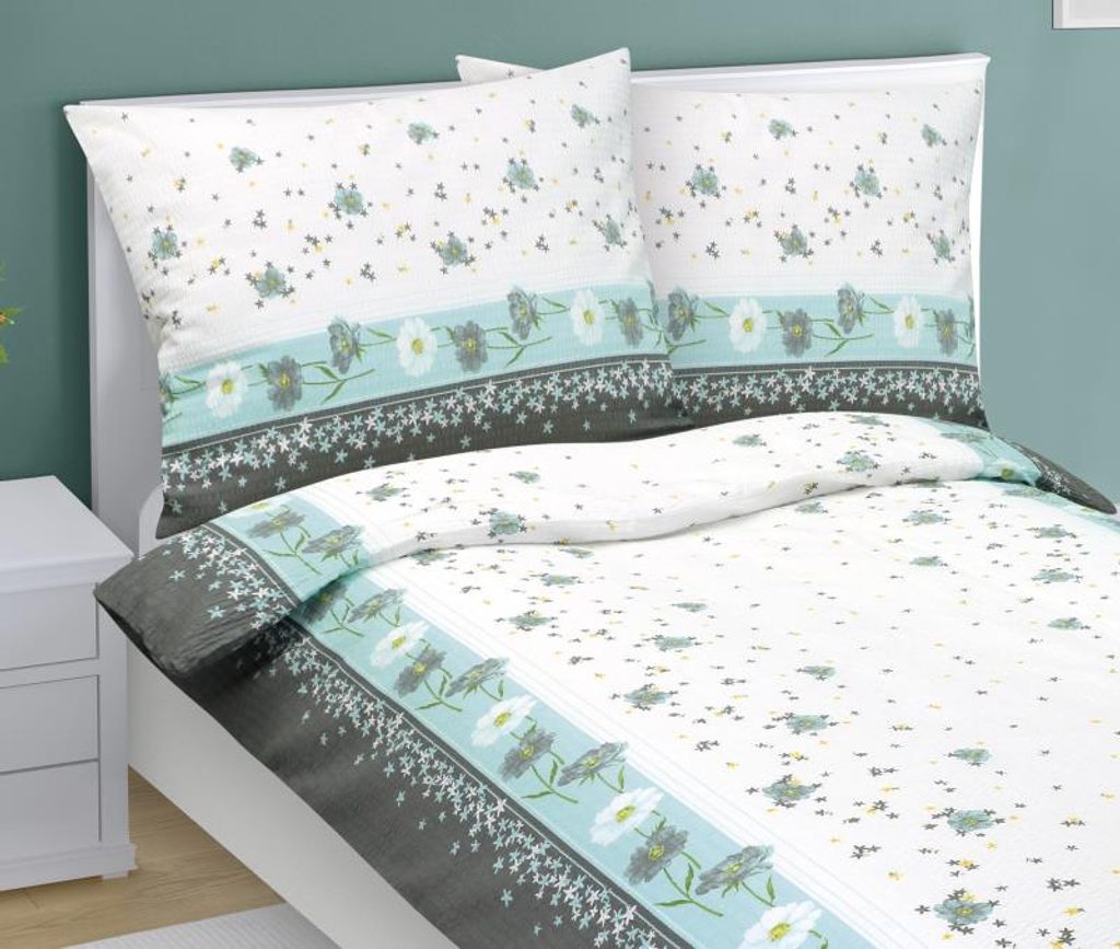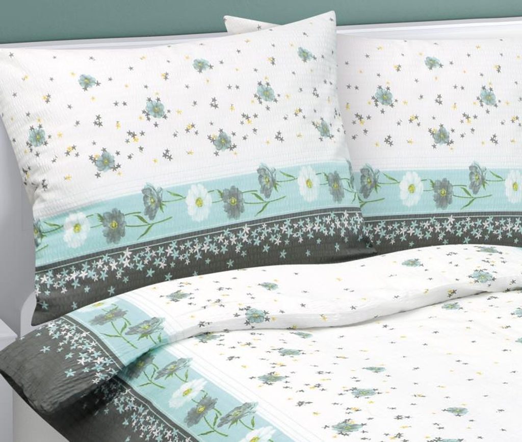 Povlečení krepové Tyrkysová,Šedá,Bílá 80/561