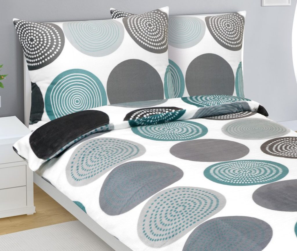 Povlečení MIKROFLANEL Tyrkysová,Šedá,Bílá 95/566 140x200, 70x90 cm