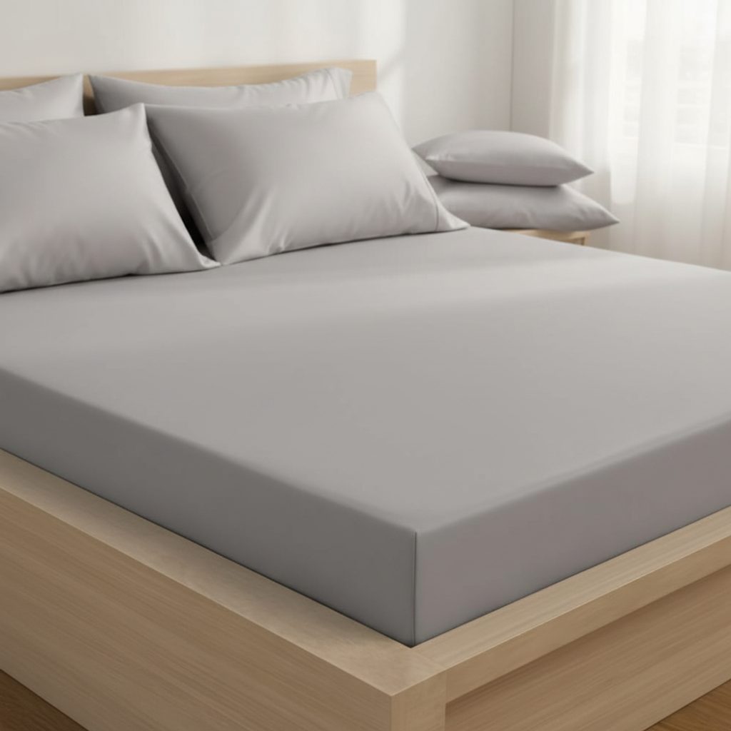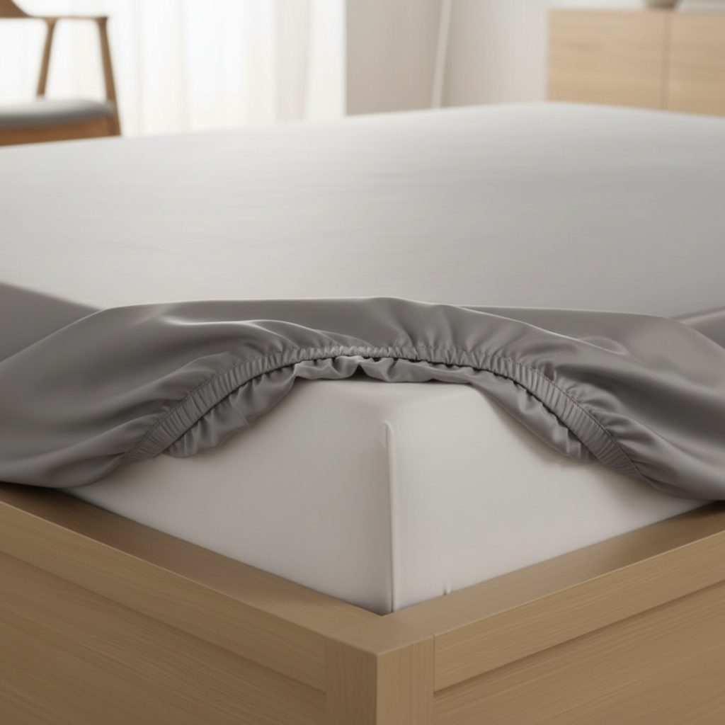 Saténové prostěradlo s gumou světle šedé