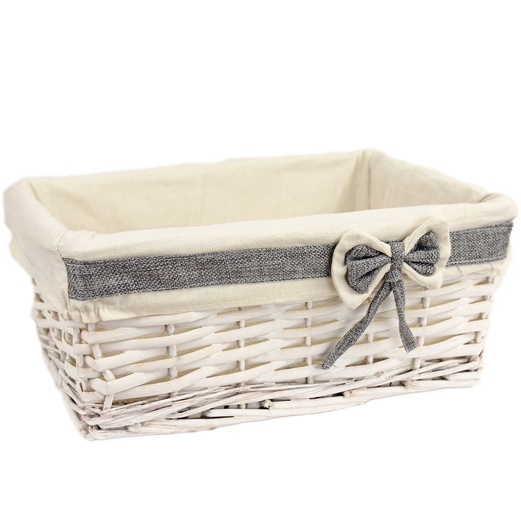 Proutěný košík bílý, 3 ks P2218 - dia19x9/22cm