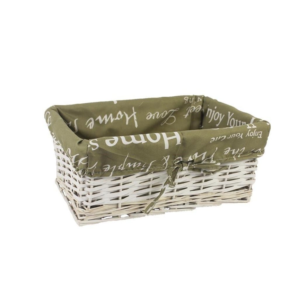 Proutěná zásuvka s látkou velká. Zásuvka má rozměry 40 x 29 cm, výšku 16 cm. Barva : bílá, látka - zelená. Materiál : proutí, látka.