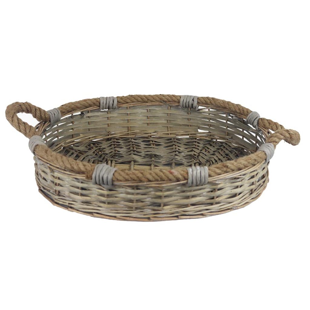 Košík oválný velký. Rozměry : 49 x 38 cm, výška 10,5 cm. Barva : šedá. Materiál : proutí, lano.