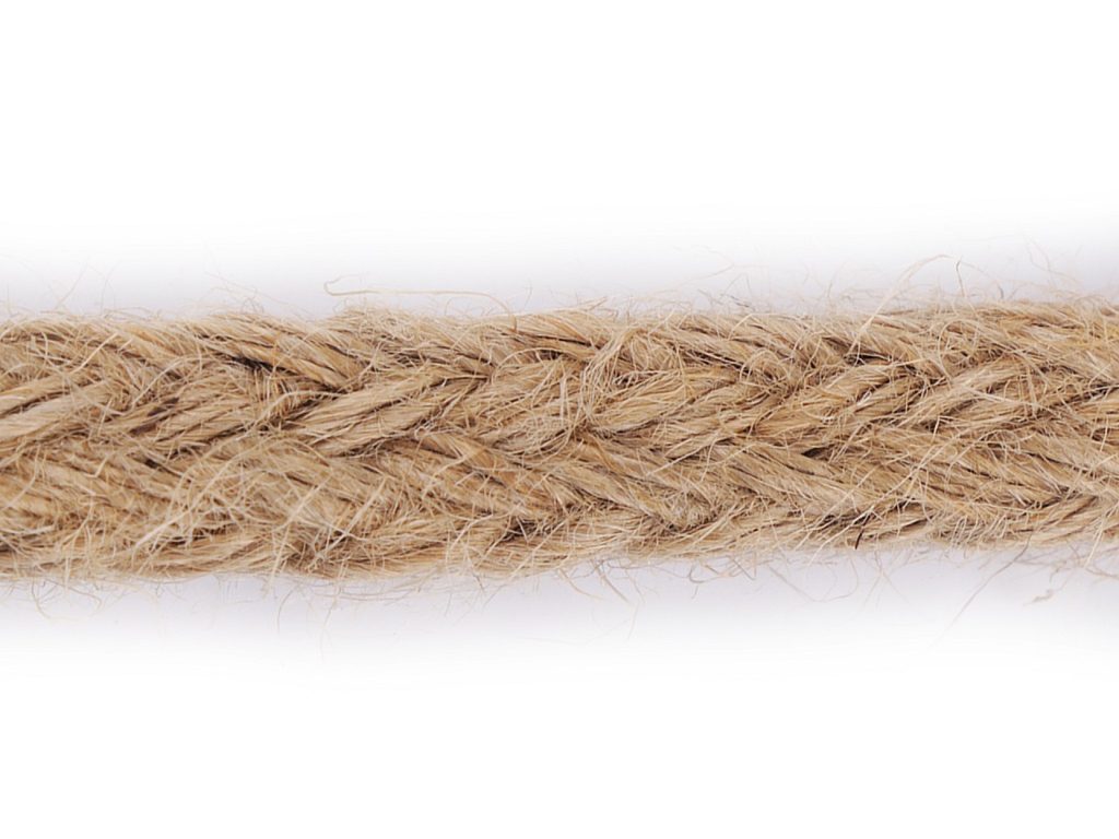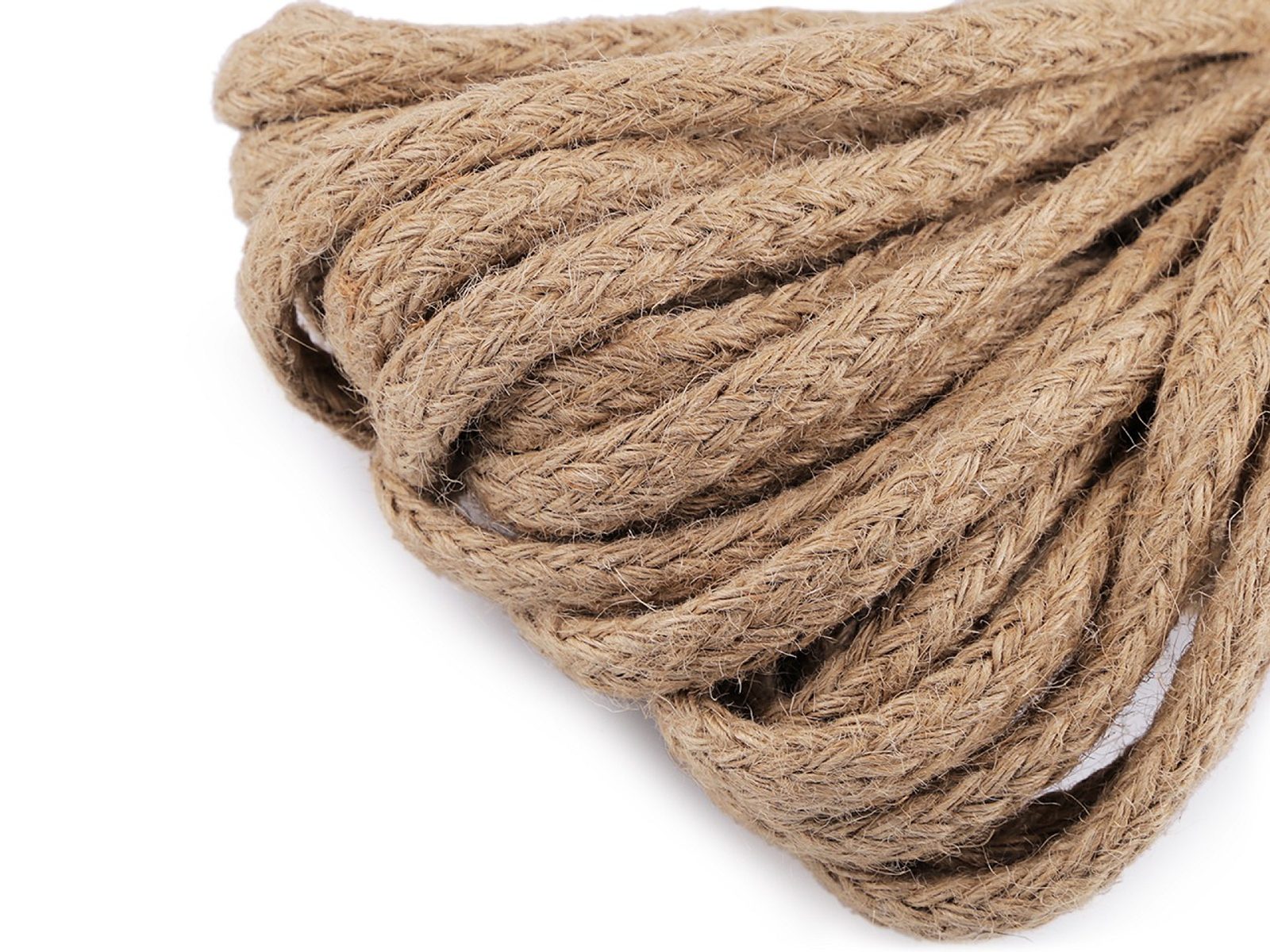 Splétaná jutová šňůra je pevná. Využijete ji jako ucha na tašky, výrobu různých dekorací či ke zdobení bytových doplňků.