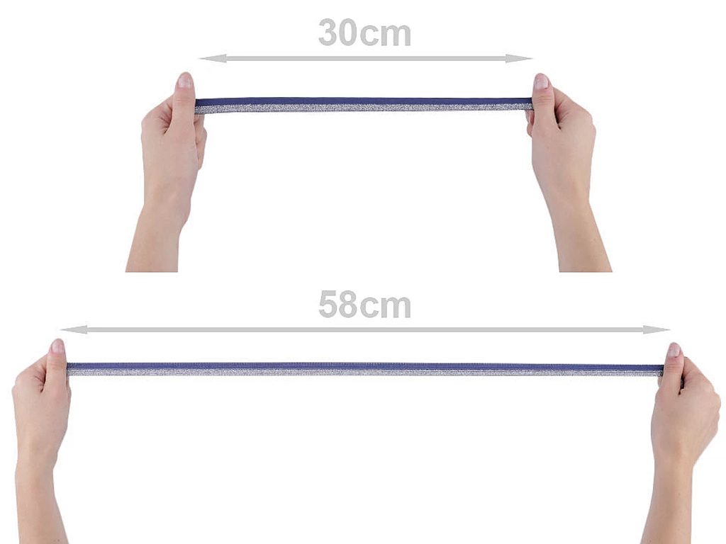 Pruženka vypadá díky lurexu elegantně. Je elastická (tažná), po roztažení se vrátí zpět do původního stavu. Lurex je všitý do poloviny pruženky po celé její délce a působivě se třpytí.
