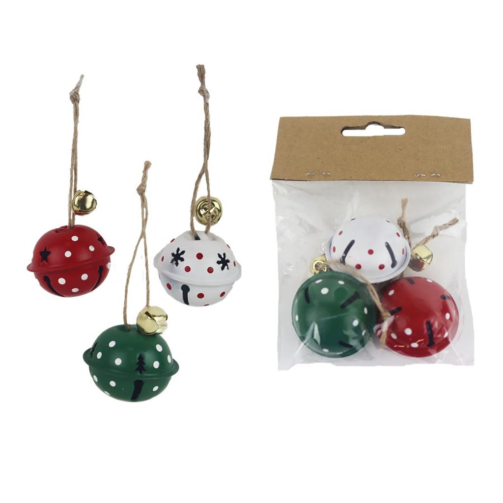 Sada rolniček k zavěšení. Sada obsahuje 3 rolničky. Rozměry : průměr 4 cm, výška 3 cm. Barva : kombinace zelená, červená, bílá. Materiál : kov.