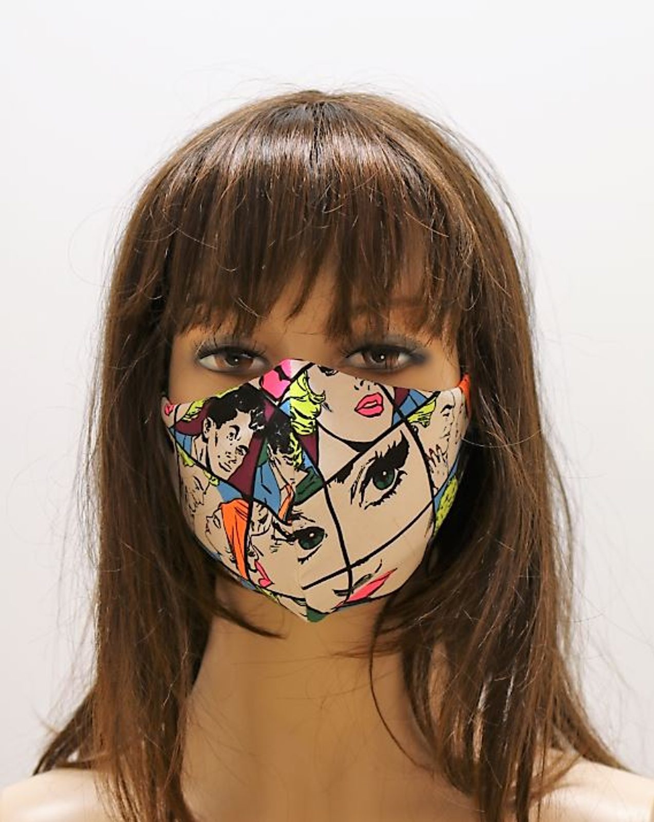 Dvourstvá bavlněná rouška pro muže i ženy na gumičku od české firmy Vestis ve vzoru KOMIKS.