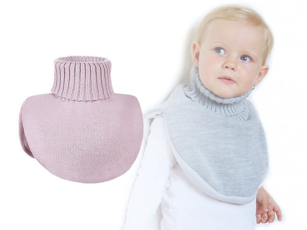 Dětský pletený nákrčník je vhodný do chladného rořního období. Je lehoučký a velice pohodlný. Lem okolo krku má pružný. Přední i zadní část nákrčníku je dvojitá, podložená hřejivým fleecem. V případě velkého chladu mohou děti zvednout lem nahoru a chránit si tak dolní část obličeje.