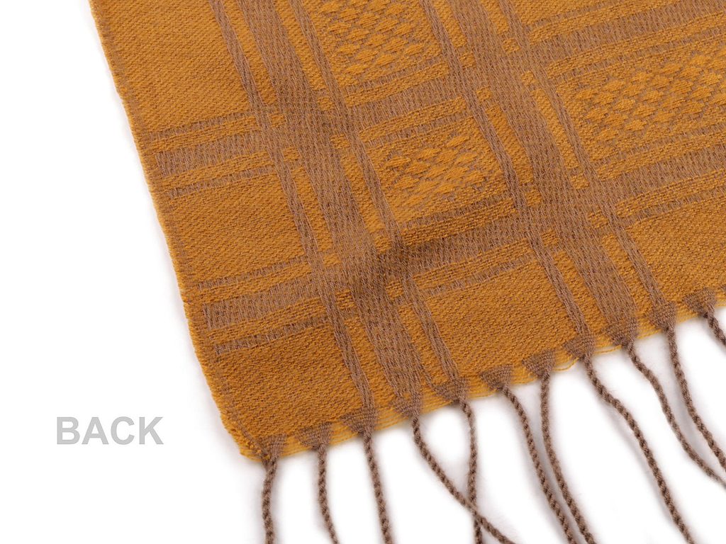 Oboustranný maxi šátek se vzorem vás příjemně zahalí a skvěle zahřeje. Jeho materiál je měkký a velmi příjemný na dotek. Dva protilehlé konce má ozdobené třásněmi. Hodí se ke kabátu, bundě i svetru. Můžete jej nosit do práce i do společnosti, jeho elegantní vzhled váš outfit dokonale dozdobí. Šátek je oboustranný, ale z druhé strany má barvy přesně naopak, můžete jej nosit jako světlý nebo tmavý.