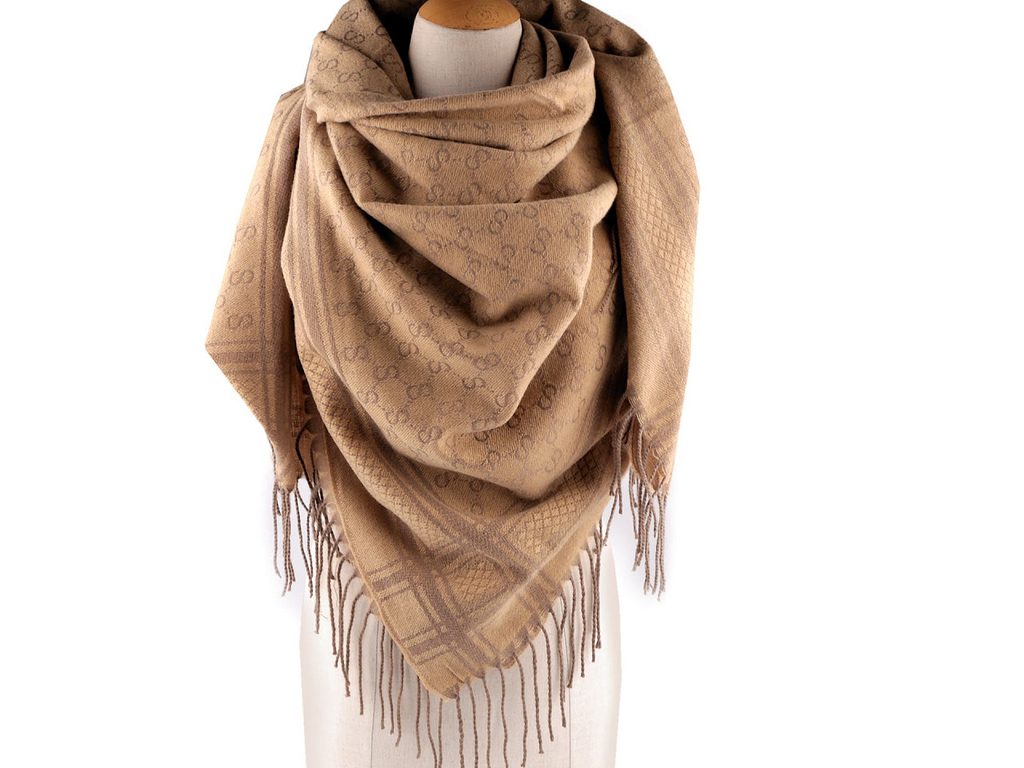 Velký teplý šátek / pléd s třásněmi 130x140 cm