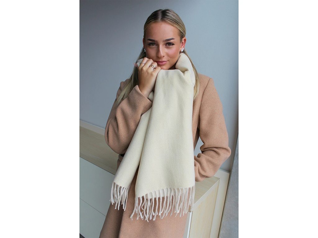 Jednobarevná šála nadchne příznivce jednoduchého stylu oblékání. Je oboustranná, ale druhá strana má jinou barvu. Komfortně vás zahřeje v sychravých dnech. Je vyrobená z materiálu příjemně hebkého na dotek. Hodí se ke kabátu, bundě i svetru. Univerzální barva je ideální pro kombinaci s různými styly, ať už preferujete elegantní či neformální vzhled. Na koncích je šála zakončená dlouhými třásněmi.