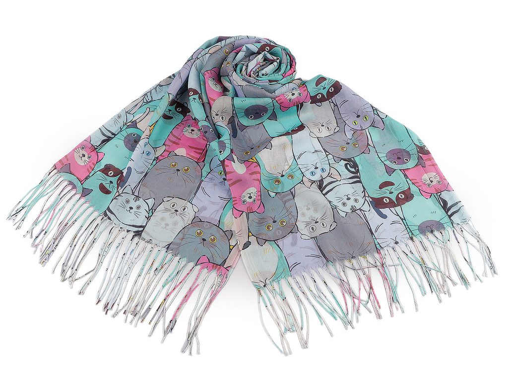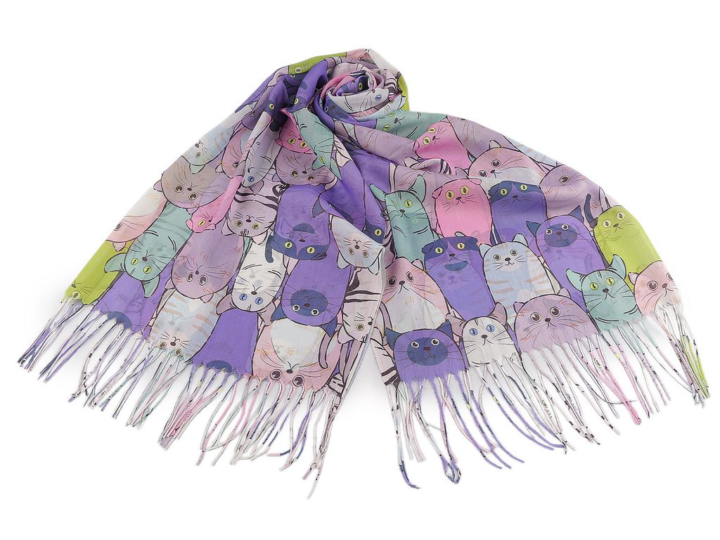 Letní šátek / šála s třásněmi kočky 70x180 cm