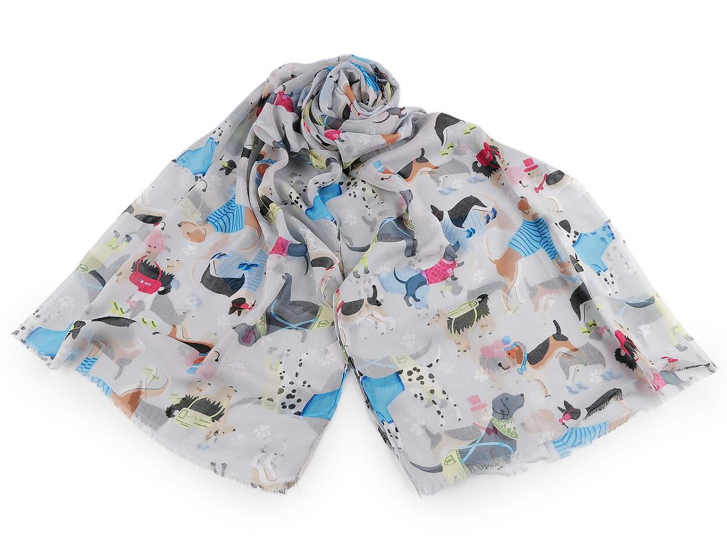 Letní šátek / šála jezevčík, buldoček 75x180 cm