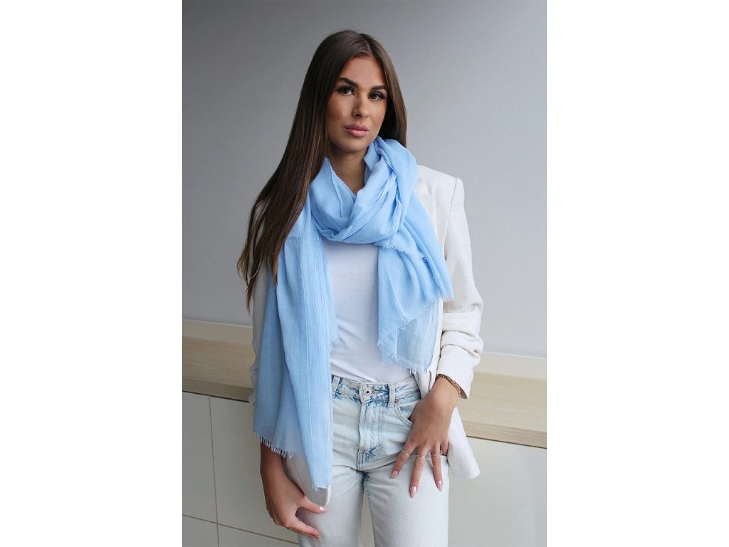Jemný lehounký šátek je velmi příjemný na dotek. Jemně prosvítá, můžete jej nosit různými způsoby – jako módní doplněk k plážovému outfitu, kolem krku i jako elegantní přehoz přes ramena. Jeho všestrannost a stylovost z něj činí ideální volbu pro cestování, procházky po pláži i večerní posezení s přáteli. Na koncích má jemné krátké třásně.