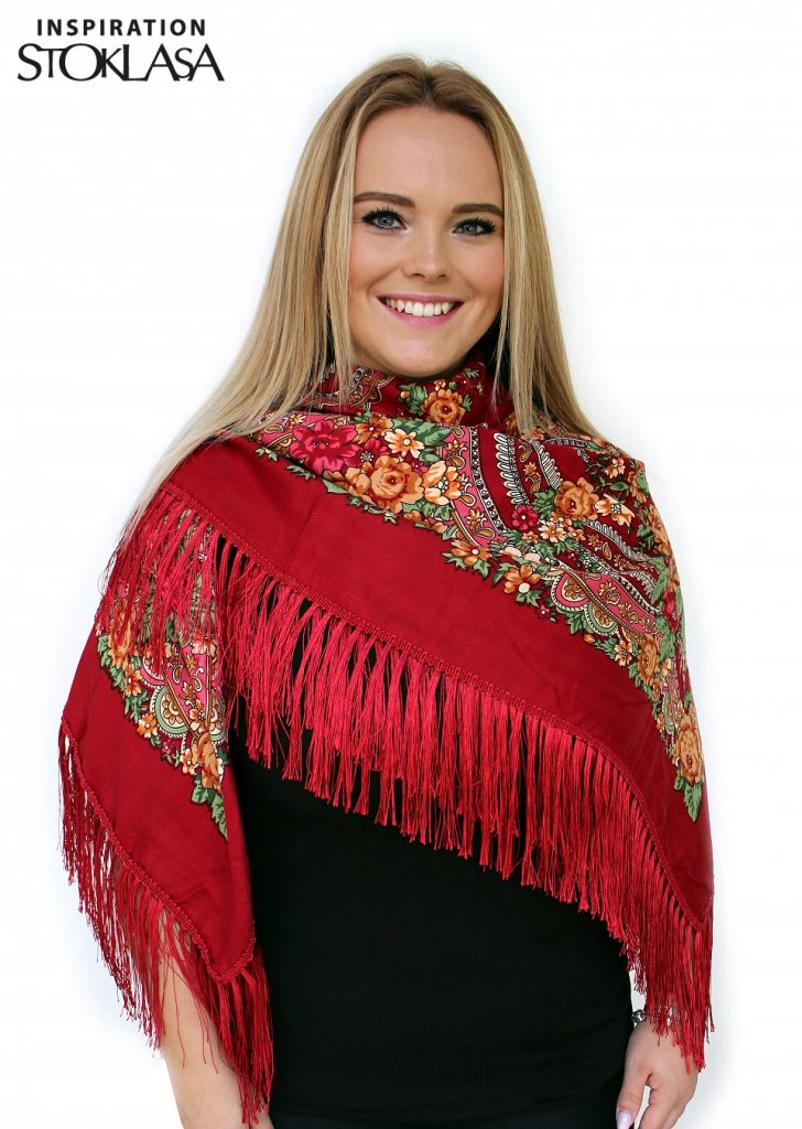 Velký folklórní šátek je doslova jako z dob našich babiček. Býval součástí tradičního oblečení a krojů. Je vyrobený z příjemného materiálu, na všech stranách je ozdobený dlouhými střapci, které krásně splývají. Velký čtvercový tvar, můžete variabilně upravit, využijete jej jak při nošení pod krkem, tak i na zádech.