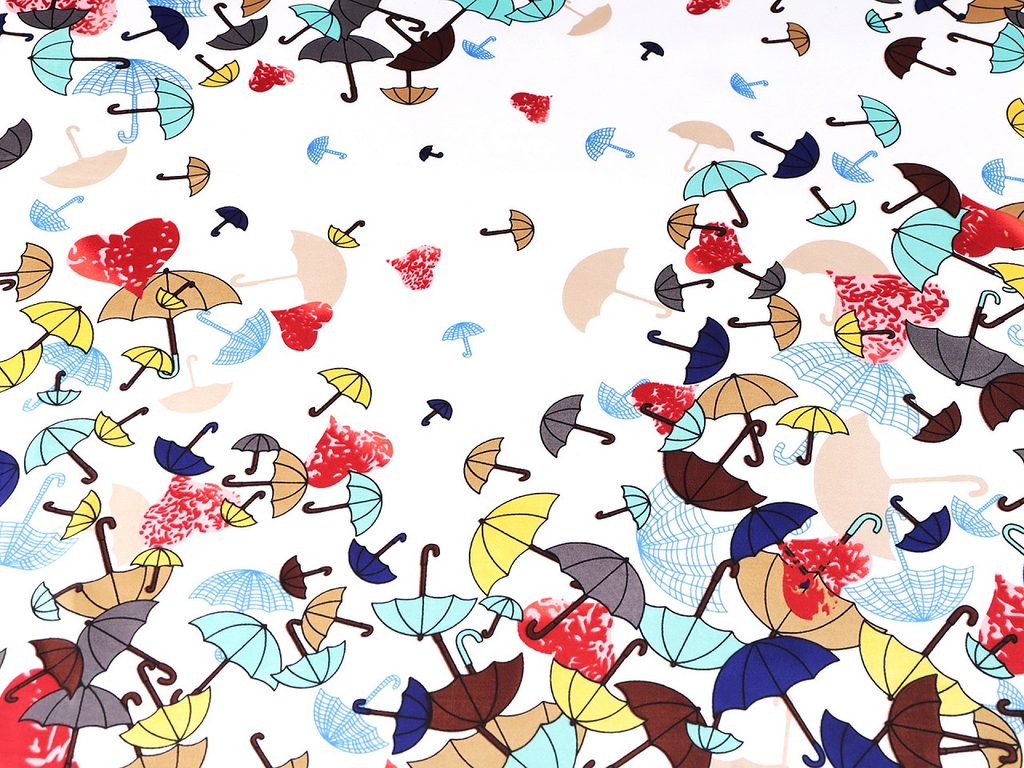 Saténový šátek s potiskem barevných deštníků je elegantním módním doplňkem. Oživíte s ním jednobarevné sáčko, halenku, šaty i tričko. Příjemný materiál s jemným leskem vás bude doslova hýčkat. Šátek je oboustranný, čtvercový tvar můžete variabilně upravit kolem krku.