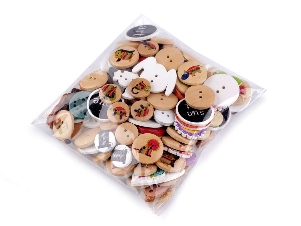 Dřevěné knoflíky jsou v mixu barev a různých tvarů. Najdete zde knoflíky lakované i nelakované. Využijete je na zdobení tašek, pytlíků, kapsářů, foto rámečků, pozvánek, jmenovek apod. Jsou vhodné pro kreativní tvoření a výrobu koláží.