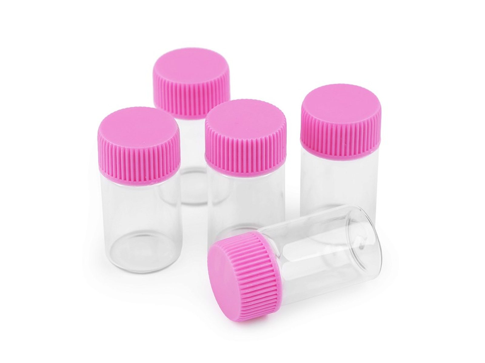 Skleněná lahvička 20x40 mm s plastovým růžovým víčkem 5 kusů