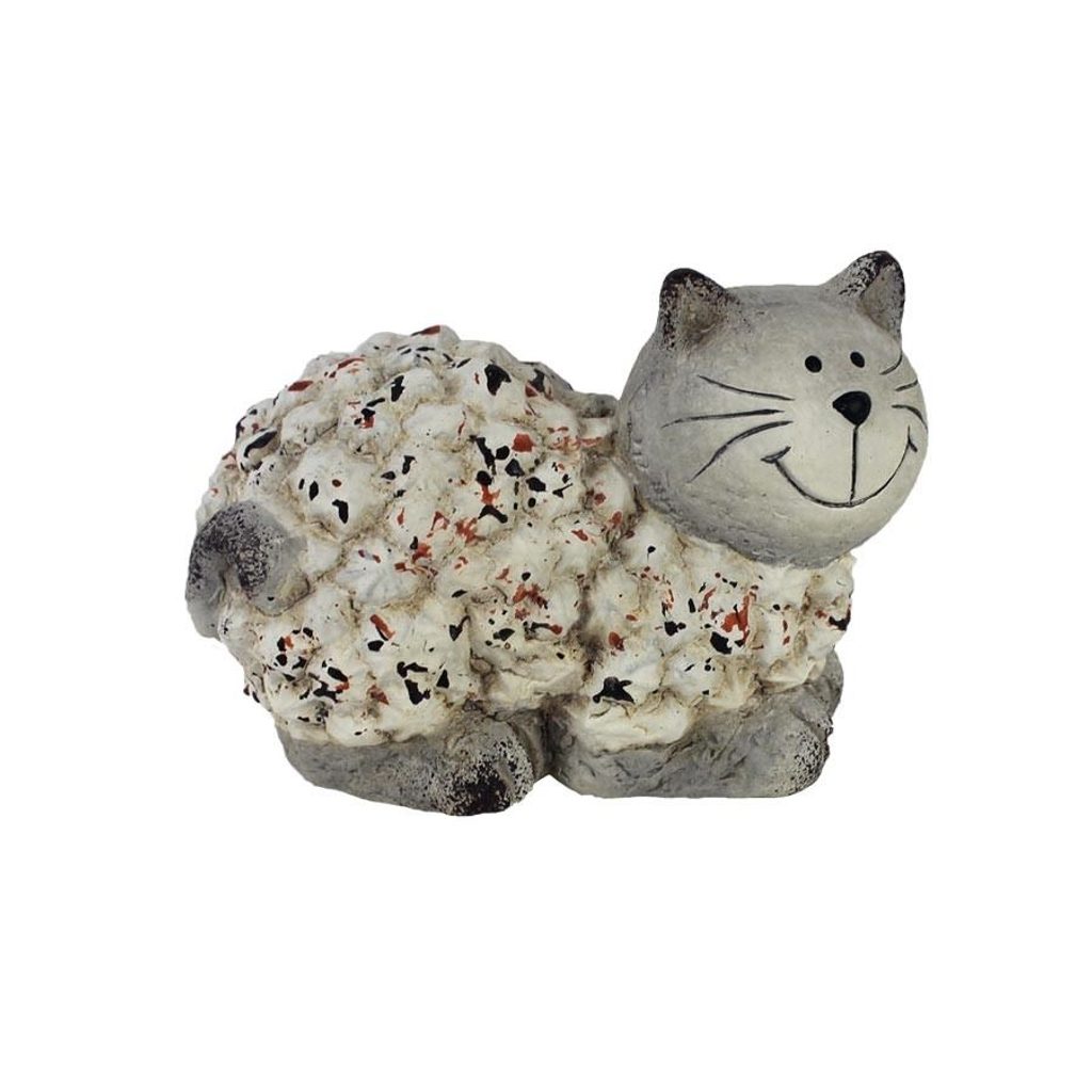Dekorační kočka. Rozměry : 16 x 10,2 cm, výška 11,3 cm. Barva : kombinace šedá s krémovou. Materiál : terakota.