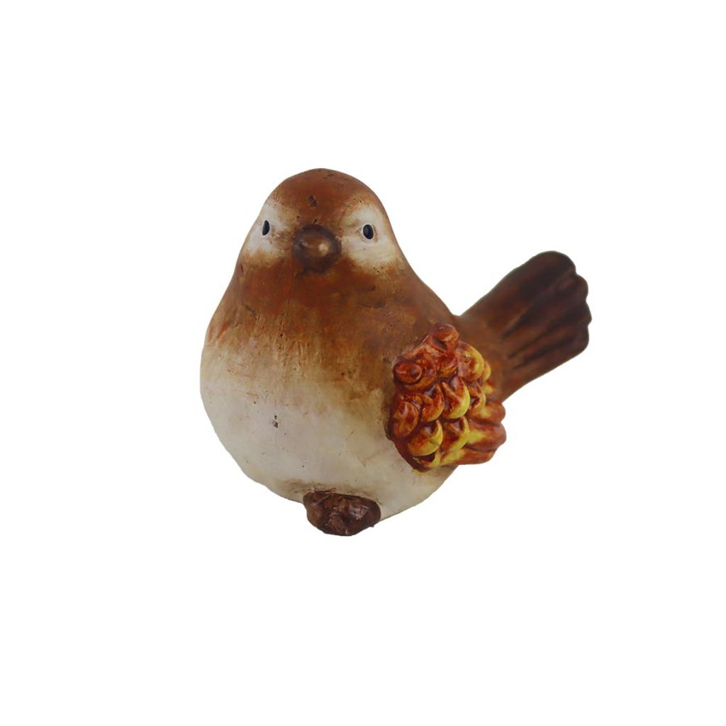 Dekorační ptáček. Rozměry : 5 × 8 cm, výška 6,5 cm. Barva : hnědá. Materiál : keramika.