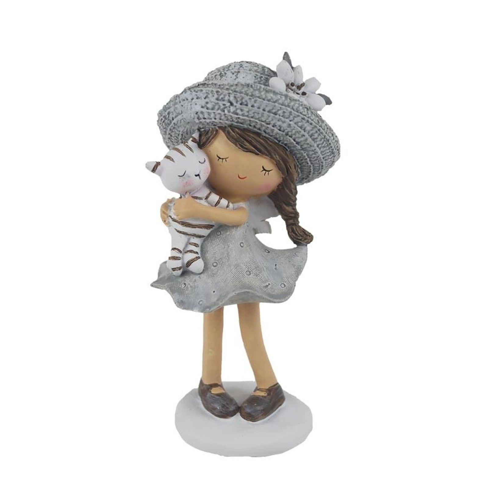 Dekorační postavička - holčička. Rozměry : 8 × 7 cm, výška 16 cm. Barva : kombinace šedá, bílá. Materiál : polyresin.
