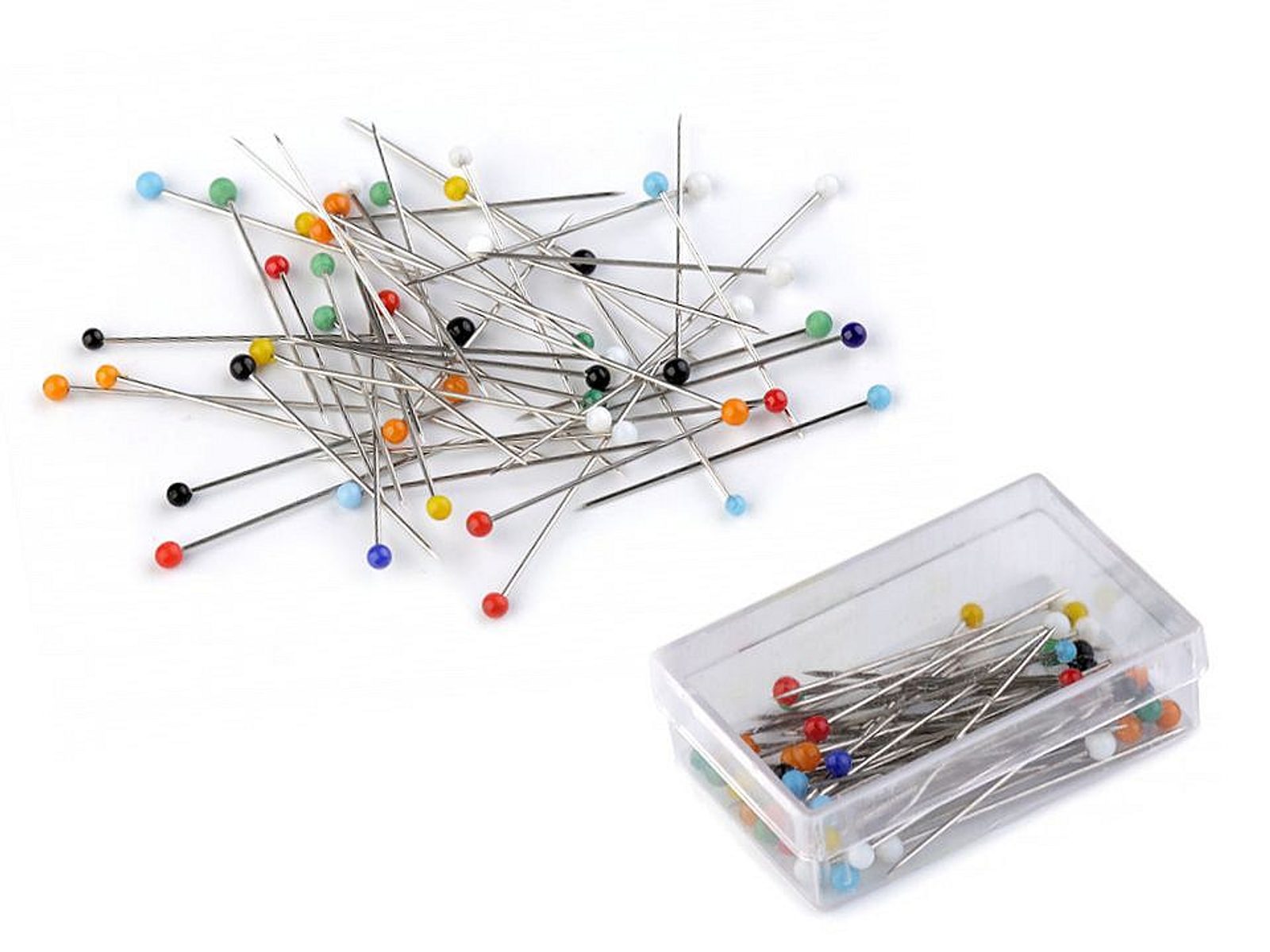 Špendlíky se skleněnou hlavičkou využijete při krejčovské činnosti i v kanceláři. Díky barevné hlavičce jsou dobře viditelné a pohodlně se drží v prstech.
