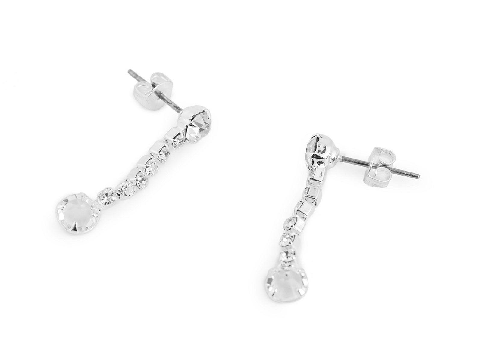 Dlouhé štrasové náušnice s broušenými kamínky jsou velice elegantní. Jsou decentní, ženy je ocení na běžný den i slavnostní události. Skleněné broušené kamínky prvotřídní české kvality jsou pevně zasazené do kovového lůžka, poutavě se třpytí. Kov na náušnicích má povrchovou úpravu se stříbrnou galvanizací.