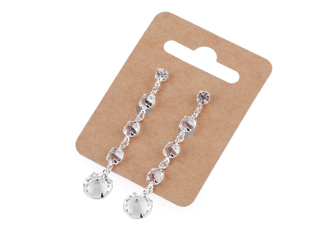 Dlouhé visací náušnice s broušenými kamínky jsou velice elegantní, ženy je ocení na slavnostní události. Skleněné broušené kamínky prvotřídní české kvality jsou pevně zasazené do kovového lůžka, poutavě se třpytí. Kov na náušnicích má povrchovou úpravu se stříbrnou galvanizací.