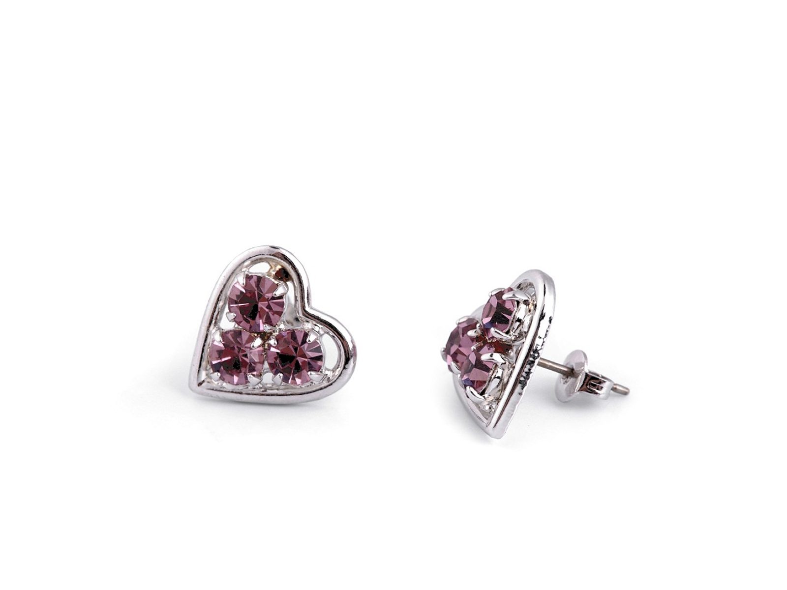 Elegantní náušnice ve tvaru srdce jsou ozdobené broušenými kamínky. Každá žena je ocení na běžné nošení i slavnostní události. Skleněné broušené kamínky prvotřídní české kvality jsou pevně zasazené do kovového lůžka. Na slunci i umělém světle se náušnice zajímavě třpytí. Kov na náušnicích má povrchovou úpravu se stříbrnou galvanizací.