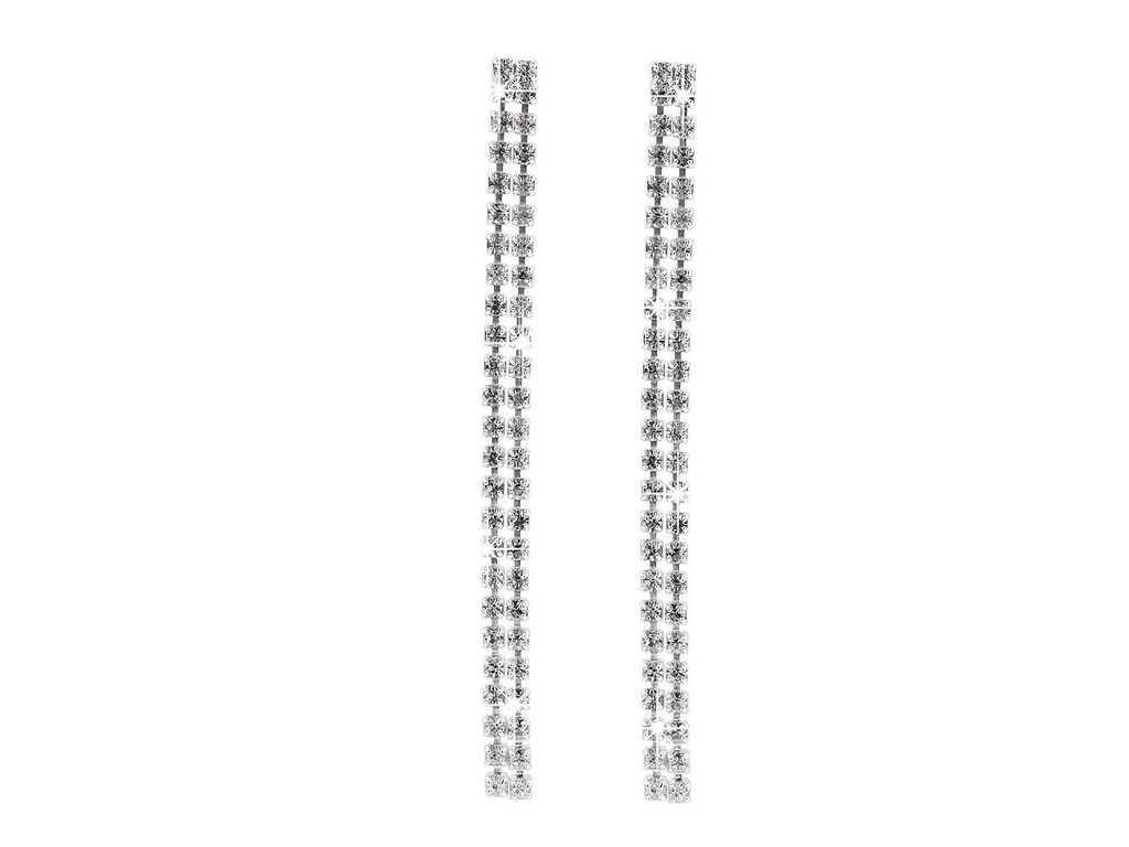 Luxusní štrasové náušnice z celosvětově proslavené jablonecké bižuterie. Jsou tvořené 2 řadami dlouhých třásní. Opticky protáhnou a zeštíhlí linii šíje. Jsou vyrobené z tzv. křišťálového skla, které se vyznačuje vysokým leskem, především při dopadu světla. Skleněné kamínky jsou zasazené do kovového lůžka a při každém pohybu hlavy se třpytí.