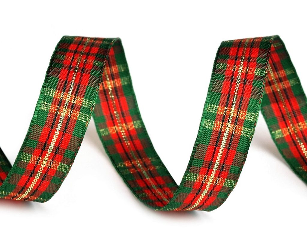 Károvaná stuha se díky lurexu působivě třpytí. Je oboustranná a pevná.