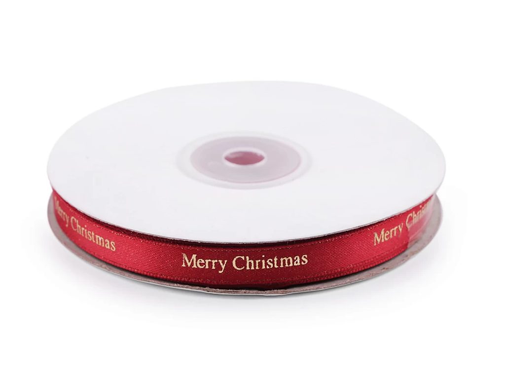 Vánoční saténová stuha Merry Christmas šíře 9 mm návin 22 METRŮ