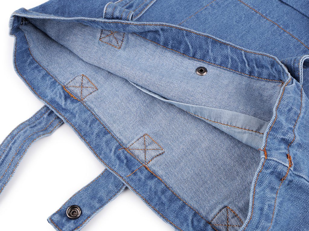 Větší riflová taška je praktická, oceníte ji na každodenní nošení. Je velice kvalitní, z hrubého bavlněného plátna. Taška se uzavírá na zip. Uvnitř má kapsu na drobnosti. Má ucha do ruky, která se dají nosit i na rameni.