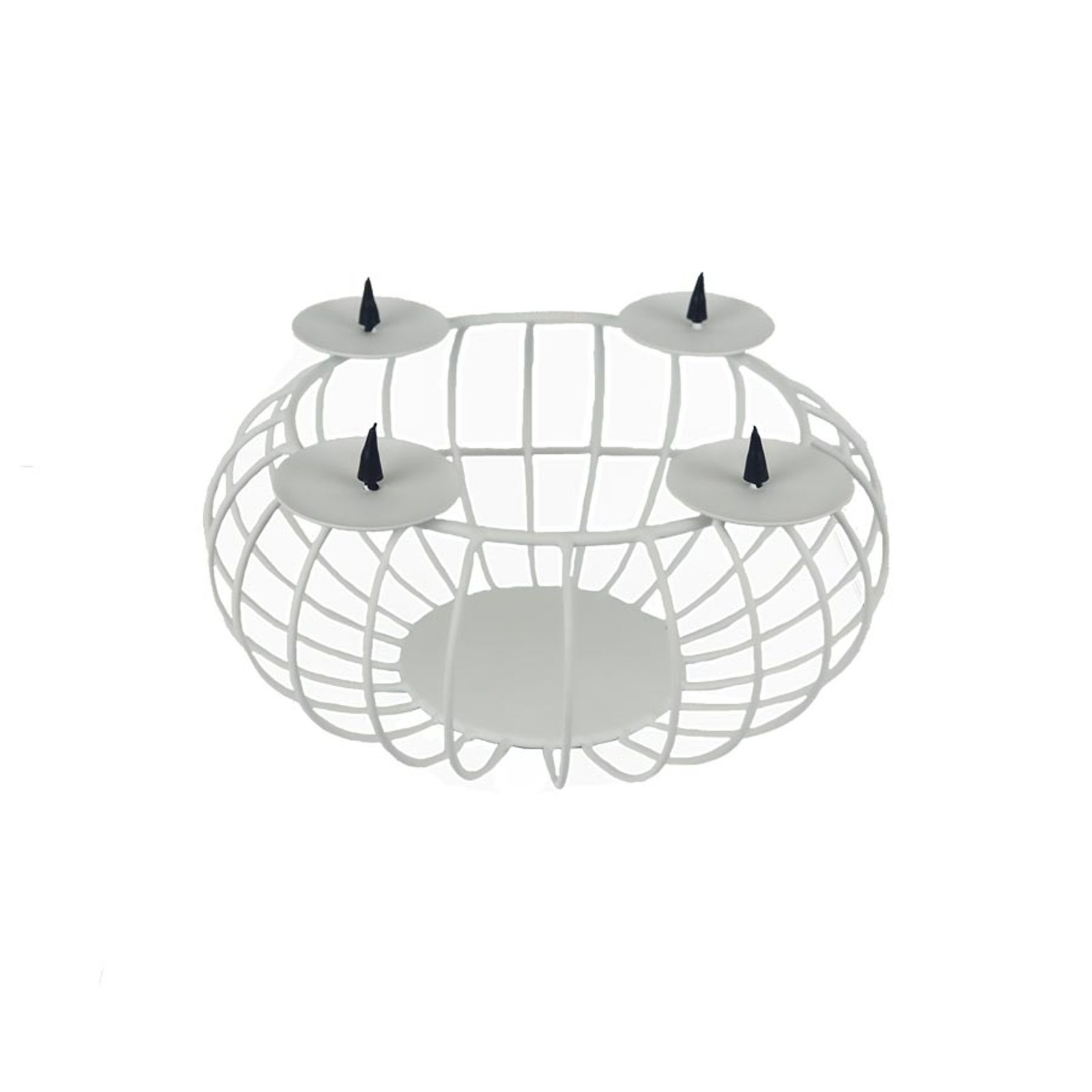 Drátěný adventní svícen na 4 svíčky. Rozměry: průměr 26 cm, výška 14 cm. Barva: bílá. Materiál: kov.