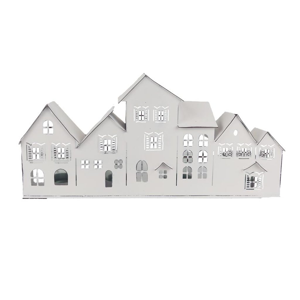 Dekorační kovový svícen vesnička na 4 svíčky.