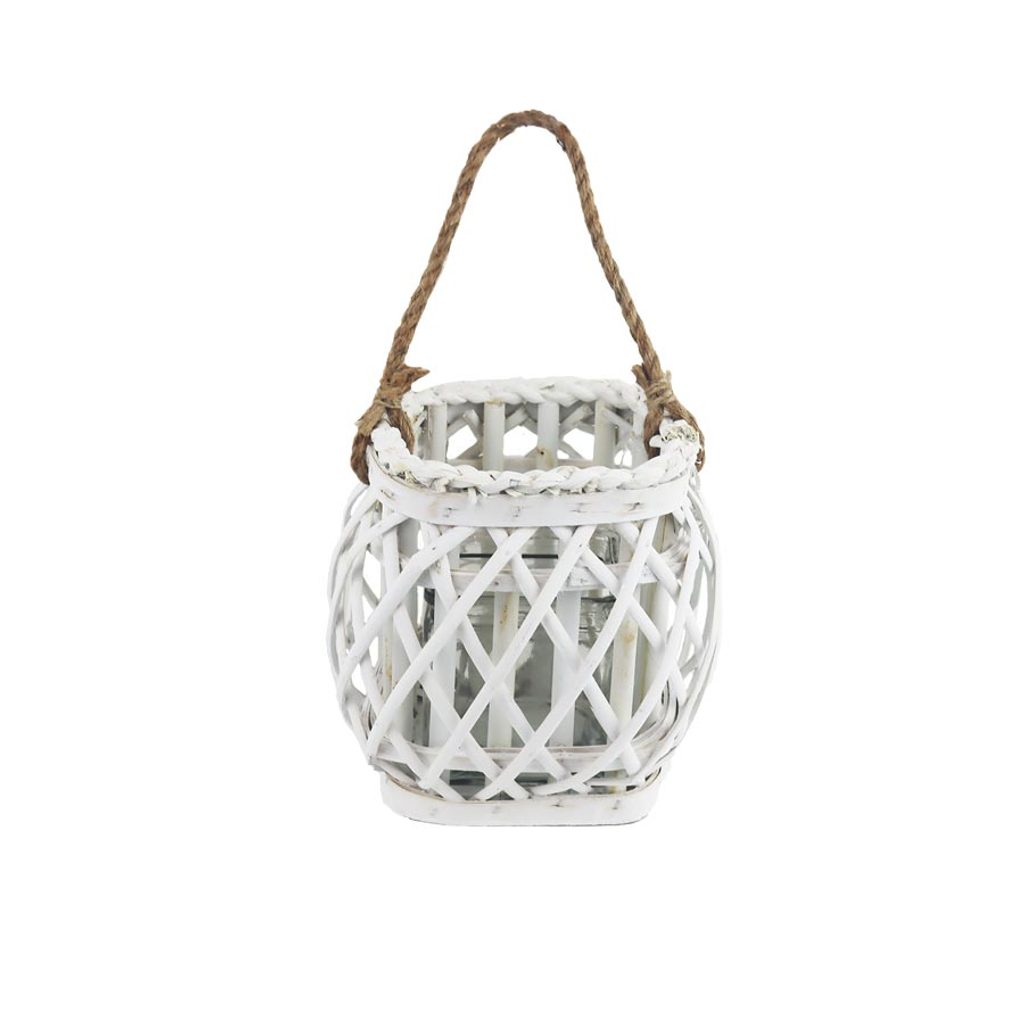 Proutěný svícen bílý. Rozměry : průměr 18 cm, výška 18 cm, sklo průměr 9,5 cm, výška 10 cm. Barva : bílá. Materiál : proutí.
