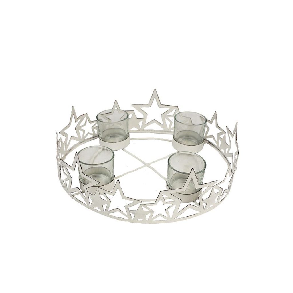 Svícen na 4 svíčky bílý, velký K1571/2 - dia 26 x 7,5 cm