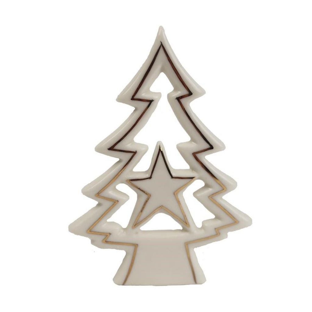 Dekorační svícen na čajovou svíčku. Rozměry : 7,4 x 6,3 cm, výška 9,9 cm. Barva : kombinace bílá se zlatou. Materiál : keramika.