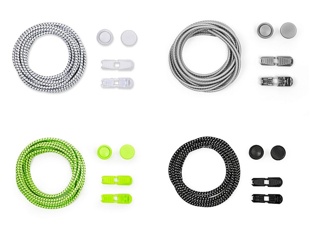 Balení obsahuje jeden pár elastických tkaniček délky 120 cm, 2 ks pojistky a 2 ks koncovky.