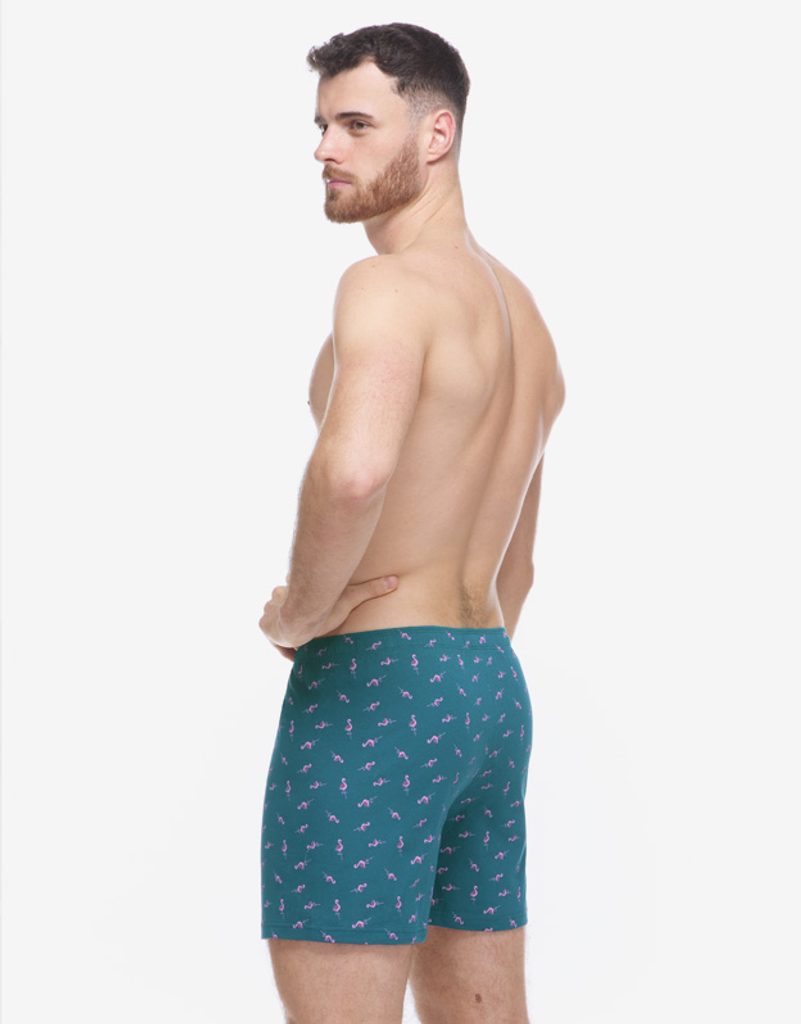 Volné trenky ze 100% potěší každého, kdo má rád klasický pohodlný střih volných trenek a přírodní materiály. Dobře padnoucí pasová guma a rozparek na dva knoflíky jsou samozřejmostí. Tento kousek má celoplošný vzor s motivem plameňáků, v pase nášivku s logem Gino. Trenky jsou vhodné pro každodenní nošení..