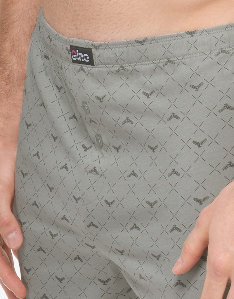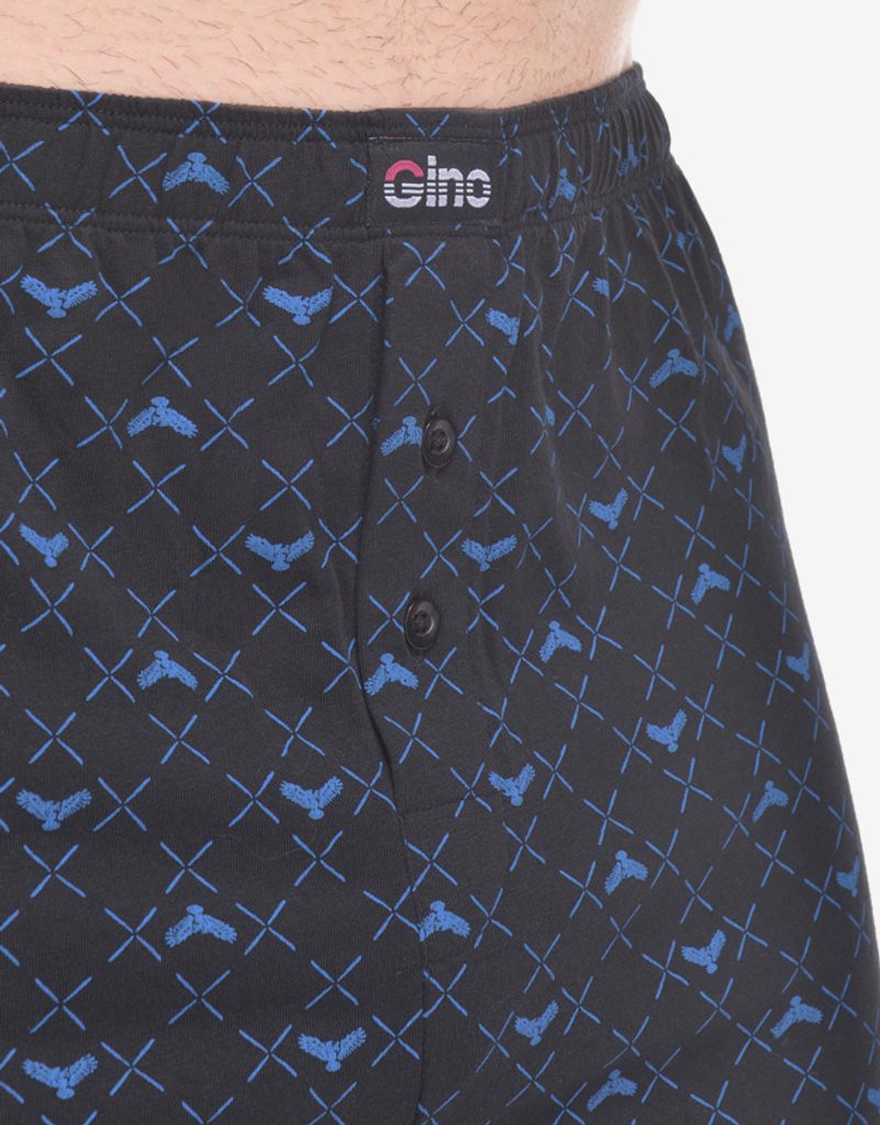 Volné trenky potěší každého, kdo má rád klasický pohodlný střih a přírodní materiály. Dobře padnoucí pasová guma a rozparek na dva knoflíky jsou samozřejmostí. Trenky jsou potištné, v pase mjí nášivku s logem Gino. Jsou vhodné pro každodenní nošení..