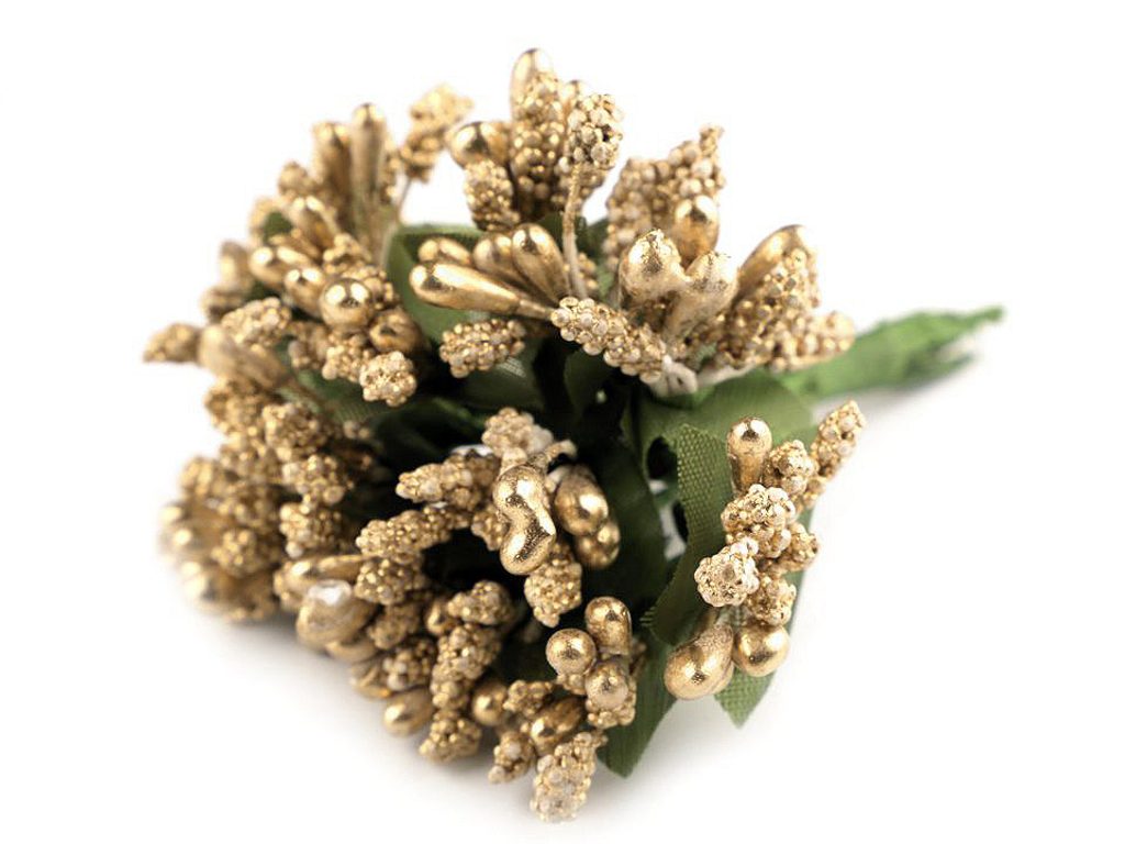Metalické pestíky jsou pevné, drží na kovovém drátku, který je obalený floristickou páskou. Na jednom drátku je malý trs složený z pestíků, bobulek a kališního lístku.