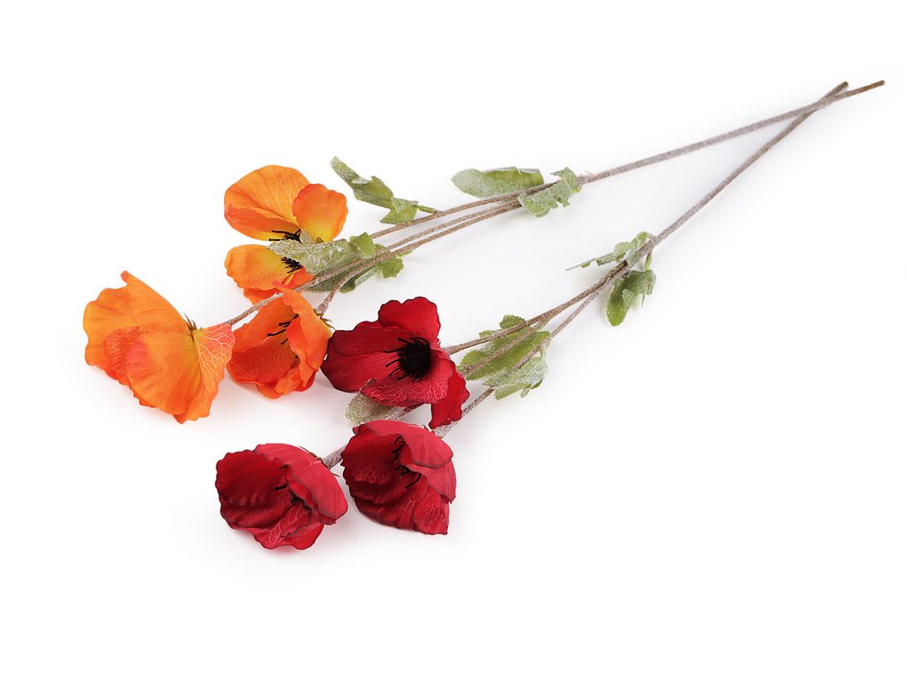 Umělý vlčí mák věrně kopíruje svou živou předlohu. Stonek má pokrytý jemnými chloupky, uvnitř je drát. Květy jsou textilní s působivým barevným stínováním a detaily.