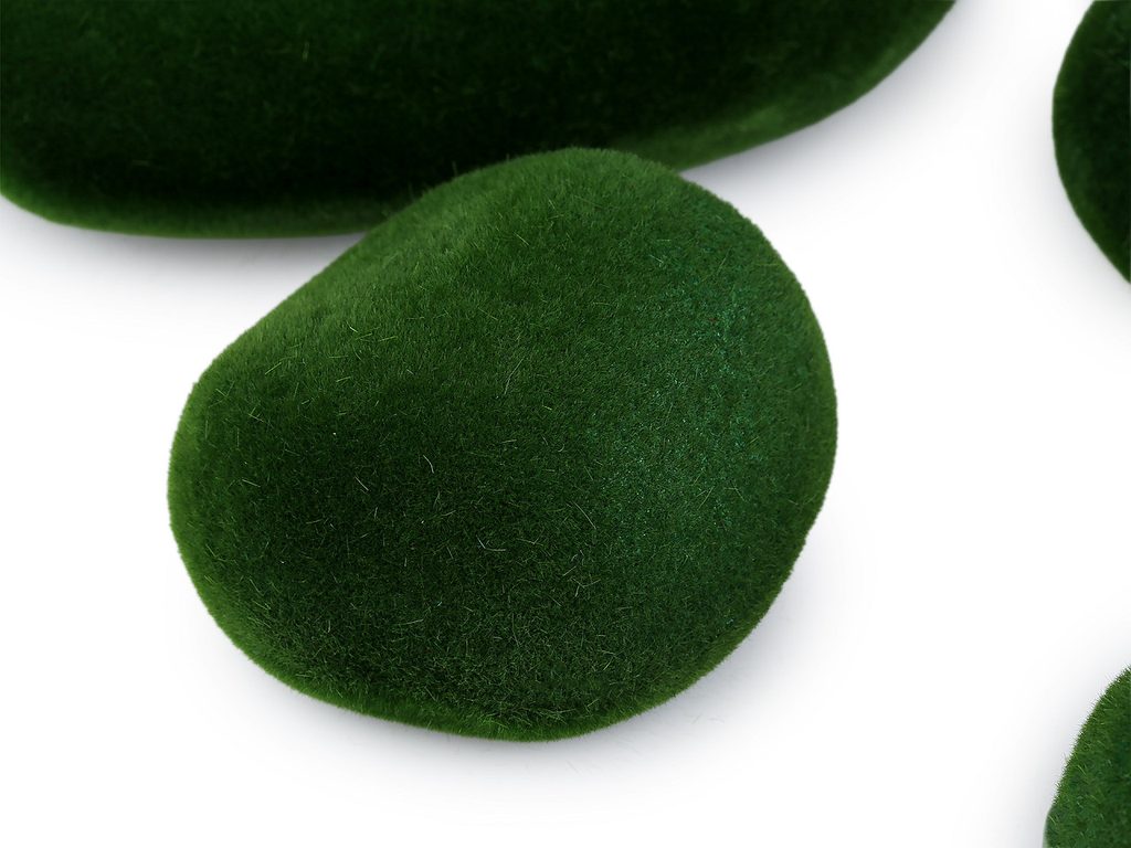 Dekorační mechové kameny dodají prostoru svěží a přírodní atmosféru. Využijete je k aranžování. Zaujmou u dekorací nejen doma, ale také v obchodních výlohách apod. Díky polystyrenovému základu se do nich lehce zapichují dekorace. Různé velikosti kamenů vám dovolí tvořit jedinečné kompozice.