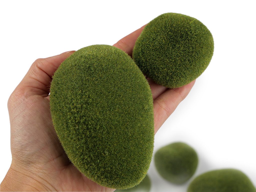 Dekorační mechové kameny využijete k aranžování. Prostoru dodají svěží a přírodní atmosféru. Zaujmou u dekorací nejen doma, ale také v obchodních výlohách apod. Díky polystyrenovému základu se do nich lehce zapichují dekorace. Různé velikosti kamenů vám dovolí tvořit jedinečné dekorativní kompozice.