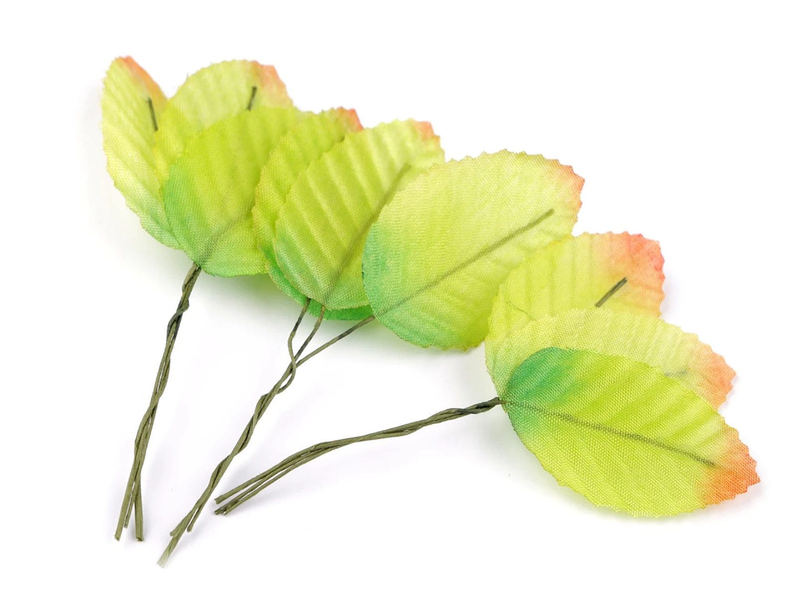 Umělé listy na drátku se budou vyjímat v dekoračních vazbách, aranžmá, ikebanách, na věncích apod. Jsou vhodné také na zdobení čelenek do vlasů. Díky drátu se dají lehce ohýbat a tvarovat.