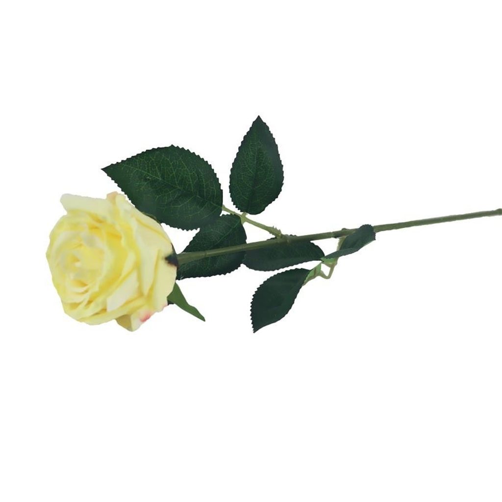 Dekorační umělá růže - žlutá. Rozměry : průměr 8 cm, celková délka 63 cm. Barva : žlutá. Materiál : plast, drát, látka.