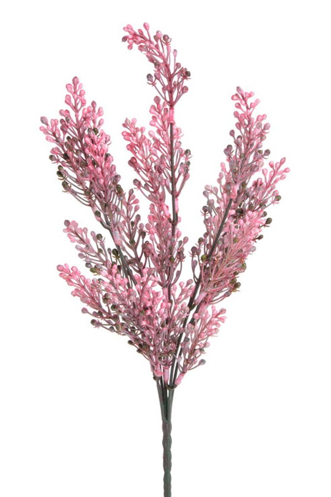 Umělý svazek kuliček populus v růžové barvě. Rostlinka má 5 větviček.