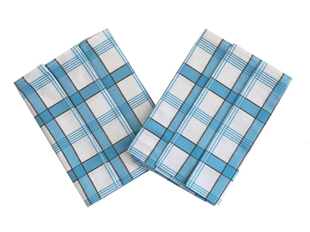 Sada tří bavlněných žakárový utěrek - extra savé. Vzor káro modré.