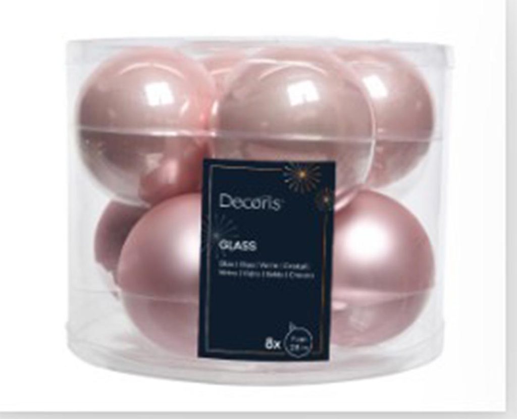 Sada vánočních ozdob. Sada obsahuje 8 ozdob. Rozměry : průměr 7 cm. Barva : růžová. Materiál : sklo.